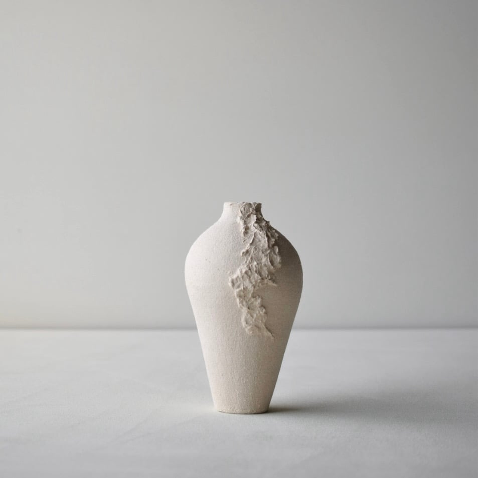 Small coiled stoneware piece, carrying marks from the hand built process, including any natural imperfections from the making process.
